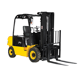 Diesel forklift services to almost half of the material handling requirement of the industry. It is simple to operate, maintain and refuel for long working cycles. Use of diesel forklift can increase the efficiency of material handling while guaranteeing safety to man, material, and machine. Diesel forklifts are the most powerful lift trucks and can climb most gradients of any warehouse or storage facility for non-stop material movement. They are generally suited for outdoor application as they can take on any terrain or uneven surface. Godrej also provides several innovative attachment solutions for specialised material movement for eg. clamp attachments for handling white goods in warehouses.